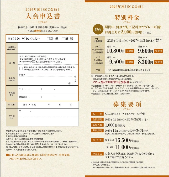 さあ、来年度もお得な「SGC会員」に入りませんか?